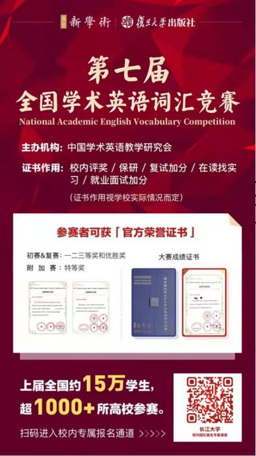 报名方法:扫描图片中“长江大学校内专属报名通道”二维码进行报名。