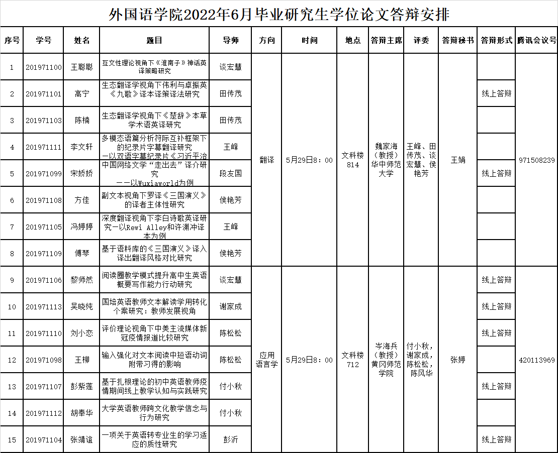 九游游戏(中国)中心官方网站2022年6月毕业研究生学位论文答辩安排