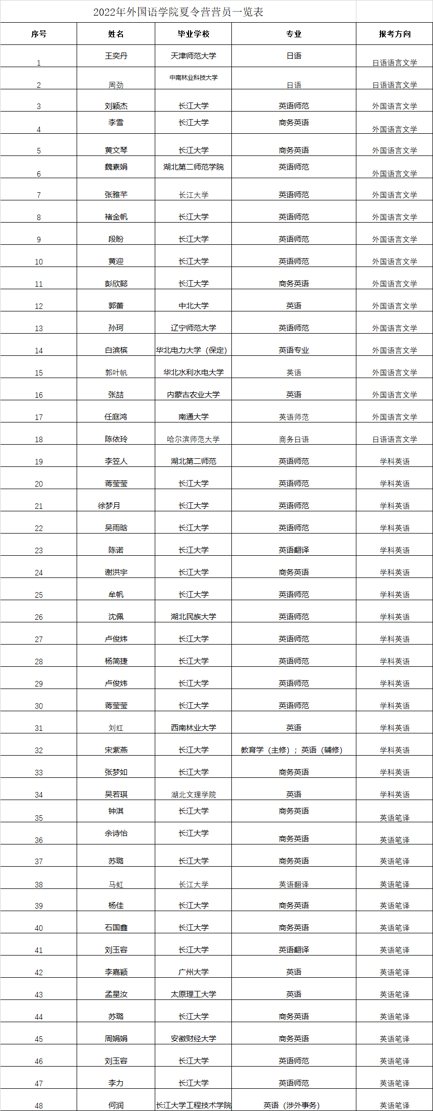 2022年九游游戏(中国)中心官方网站夏令营营员名单公示