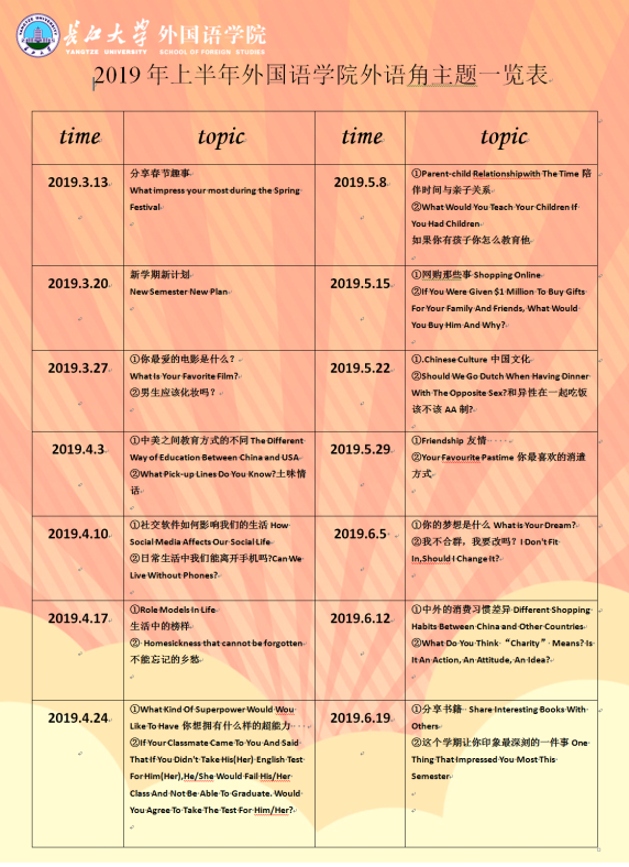 附:2019上半年外语角活动主题一览表