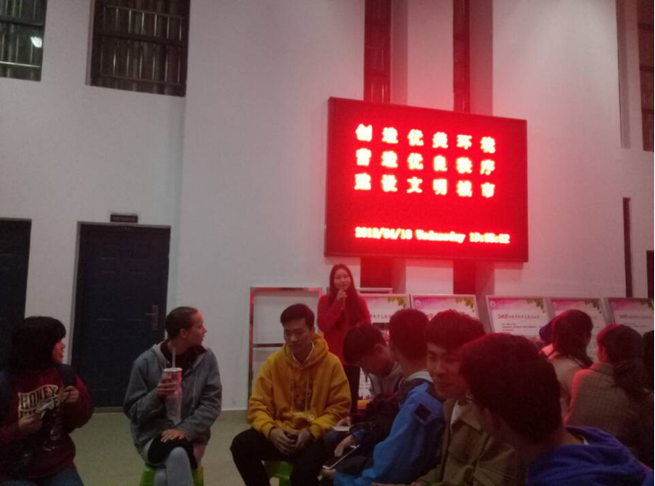 开始讨论,主持人简介绍互联网对我们生活的影响,引出本次主题。同学们都跃跃欲试,准备一展自己的口语风采。大家围成四个圈,针对本次的话题提出自己的观点,不同观点的相互碰撞,擦出了不一样的火花。随着讨论的不断深入,外语角活动气氛被推向高潮。