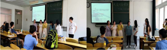 英翻11601班于2019年5月17日第三大节在13C—303举办了5月班级特色活动。此次班特色活动主题为“走近圣经”。主持人:谢锐强,王时特邀嘉宾:张文勋老师本次班级特色活动由介绍圣经,读圣经经典,上帝创世界,游戏以及考研心得与进度的分享与交流组成。本次活动的第一阶段是介绍圣经,首先,主持人谢锐强同学简要地介绍了圣经。《圣经》又名《新旧约全书》,由《旧约》《新约》组成。《旧约》一共有三十九卷,以古希伯来文(含亚兰文)写就,由犹太教教士依据犹太教的教义编纂而成。它囊括了犹太及邻近民族从公元前12世纪至公元前2世纪的人文历史资料。《新约》一共27卷。活动第二阶段,简要介绍圣经中十大经典人物及他的故事。包括以撒,玛士撒拉,拉麦,亚当与夏娃,该隐与亚伯等。其后,班级特色活动进入第三阶段,上帝创世界这一故事的介绍。上帝用六天创造了世界,休息了一天,所以七天为一周。接下来活动进入萝卜蹲游戏阶段,该阶段由严欣怡主持。大家踊跃参与,气氛活跃。游戏过后,进入考研心得与进度分享交流阶段。童飞同学和瞿雅同学代表广大考研同胞给家分享了自己在考研路上的故事,并给我们提出了许多建议与注意事项。最后,班级特色活动在同学们的掌声中落下了帷幕。感谢张文勋老师以及同学们的参与。