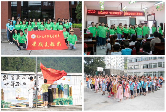 7月13日下午,志愿者们来到水月寺镇中心学校。通过自愿报名,公开招收当地78名1-8年级学生参加长江大学“阳光号列车”暑期夏令营活动。7月15日,夏令营活动正式开营。