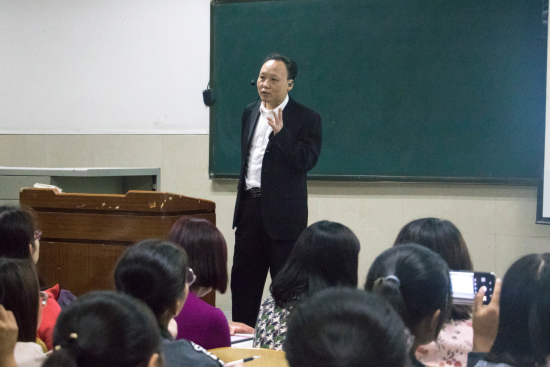此次英语专业的入学教育由我院商务英语系主任张玉宏老师宣讲。张老师首先对商务英语专业进行了大致介绍,然后简要说明了我院商务英语专业的基本情况与就业前景,他指出:“我院商务英语专业的水平在湖北省内乃至全国都有着卓越的排名,在众多实习合作的企业中也有着良好口碑”。同时张老师也向同学们强调了学习的重要性:“作为英语专业学生要把心思放在提高自身英语水品、提升自我综合能力的方向上,只有成绩优秀、履历丰富,才能在专业中脱颖而出,实现自己的就业规划”。紧接着,张老师就有关我院英语专业的人才培养计划与学科发展前景也进行了详细介绍,为同学们的专业分流提前打好基础。