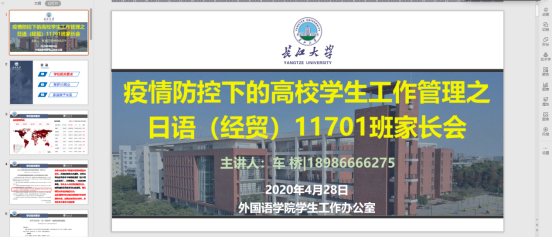 线上家长会,班主任老师们就学生居家学习期间应注意哪些安全事项、家庭亲子关系处理、学生心理异常处理方式等问题与学生及家长交流意见。此外,强调学生未收到正式通知前不得提前返校,学生需提高安全意识,谨防各类诈骗,严防溺水、失火、中毒等安全事故的发生,并要求家长切实履行好监督责任,与学校共同维护学生安全。最后,给学生家长发送学院和心理健康教育中心拟定的“致家长的一封信”,给学生与家长提供了心理援助服务热线联系方式。