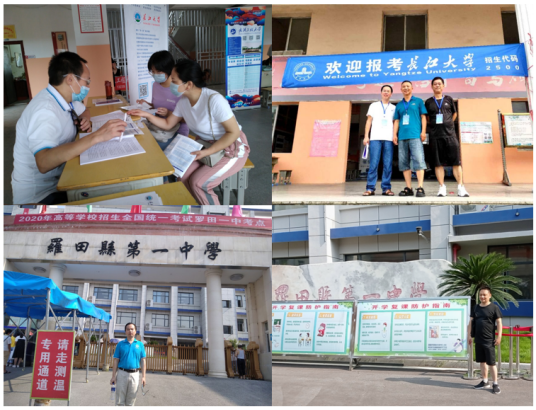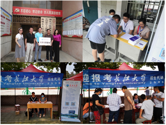7月24日,负责罗田一中招生宣传的张文勋和邓鹏老师来到该中学,在中学负责人大力支持下,抢占有利地形,支起带来的帐篷,张贴宣传海报,拉起写有“欢迎报考长江大学”的横幅,搬来凳子、椅子,完成了摆摊设点任务,利用7月25日考生集中返校填报志愿的机会,进行一对一的咨询。