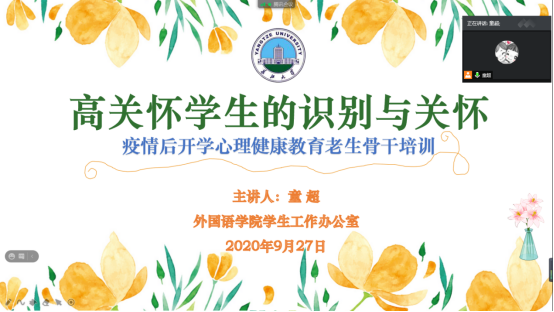 高关怀学生的识别与关怀——疫情后开学心理健康教育老生骨干培训