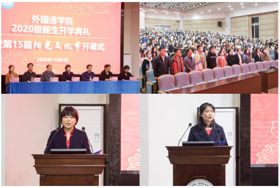 (摄/张芷艺 袁缘 文/韩思洁) 朗朗金秋,丹桂飘香。10月5日晚,外国语学院2020级新生开学典礼暨第十五届“阳光文化节”开幕式在12教405举行。九游游戏(中国)中心官方网站院长谈宏慧教授,党委书记危煜祥老师、副院长谢家成教授、副院长彭沂副教授、党委副书记魏红洁老师,学术委员会主席、博士生导师田传茂教授、教学委员会主席、英语系教师代表鲁志荣副教授,各系部主任、新生班主任老师、学工办辅导员老师出席典礼。我院448名全体新生参加了开学典礼,此次典礼由魏老师主持。