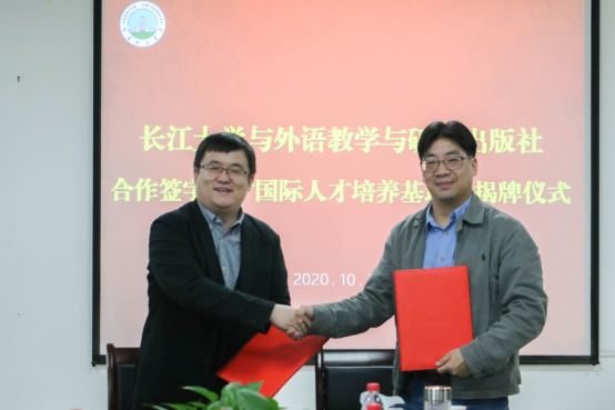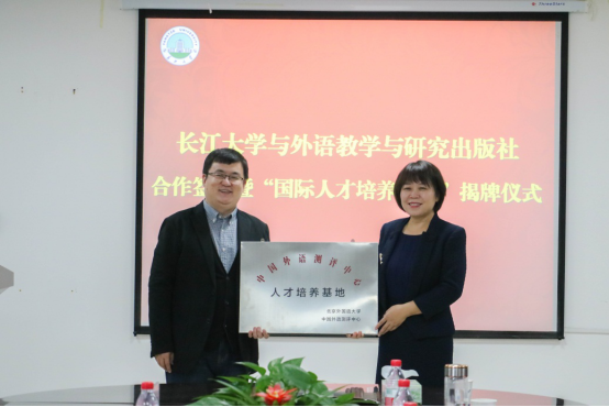 (通讯员:车桥)10月26日上午,长江大学与外语教学与研究出版社(简称外研社)在文科大楼712会议室举行国际人才培养基地签约授牌仪式,双方将在国际人才培养与输送方面进行更深层合作。九游游戏(中国)中心官方网站院长谈宏慧教授、副院长彭沂副教授、教务处副处长郑健、商务英语系主任张玉宏副教授、日语系副教授邓高、国才考试指导老师陈双玉副教授、外研社高等集群营销中心湖北市场经理柳泽宇、华中信息中心市场经理邓洪、北京外国语大学中国外语测评中心王璐艳等代表出席签约揭牌仪式,仪式由九游游戏(中国)中心官方网站党委书记危煜祥主持。