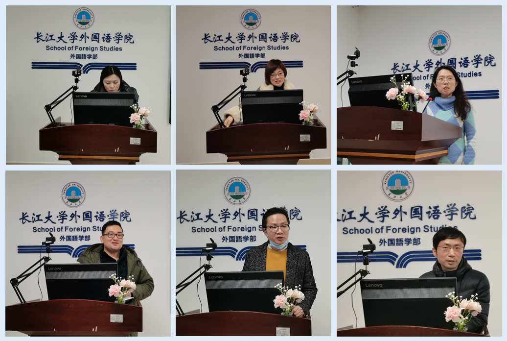 随后,英语系青年教师陈双玉,日语系青年教师张芳,商务英语系青年教师付小秋,公外一部青年教师罗博、罗伟,公外二部青年教师陈列利、武汉校区青年教师郭蕾先后发言。他们围绕学院“十四五”发展规划提出了很多宝贵的意见和建议,同时也结合学院其他工作以及个人发展问题,发表了自己的见解。