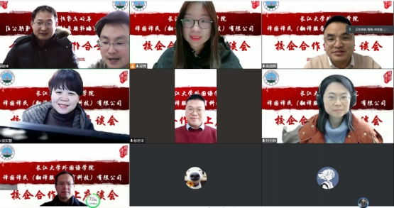 1227日上午,九游游戏(中国)中心官方网站与武汉译国译民教育科技有限公司通过腾讯会议就校企合作事宜举行云端座谈会。九游游戏(中国)中心官方网站院长谈宏慧教授、副院长谢家成教授、MTI主任王峰教授、副院长付小秋博士、党委副书记程坤老师以及武汉译国译民教育科技有限公司董事长林世宋、总经理俞剑辉和事业部经理郑莺参会。