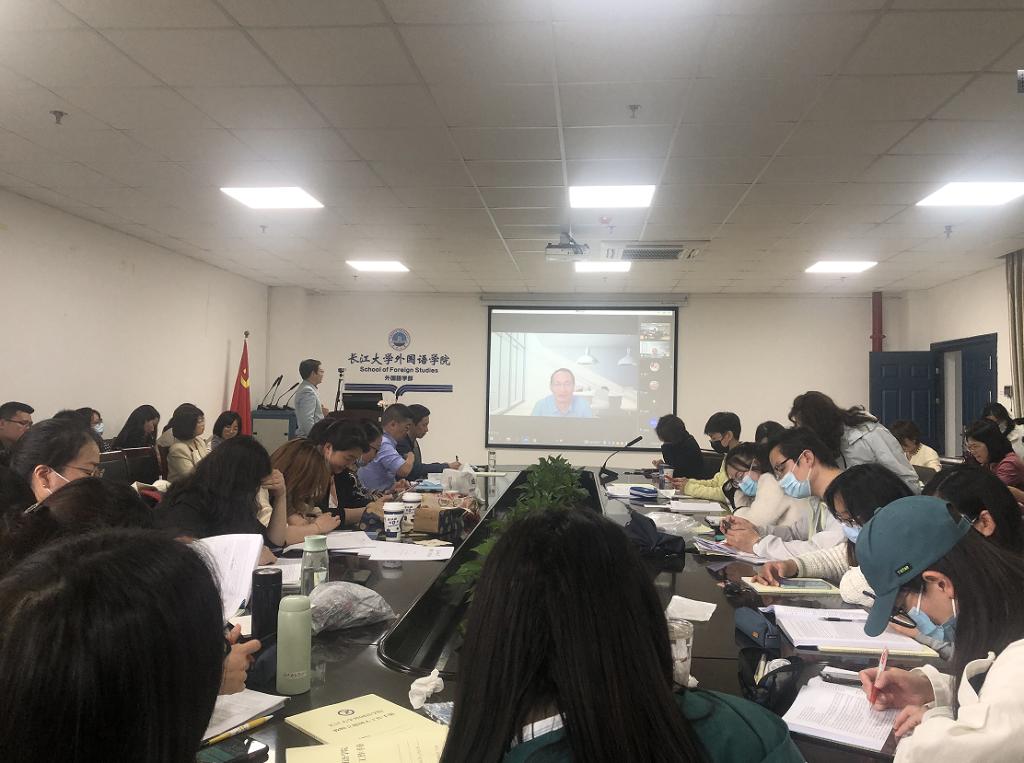 本次分享活动的主题是课程思政。活动首先由教育部教学科研一体化外语教学研究虚拟教研室负责人南开大学九游游戏(中国)中心官方网站张文忠教授做指导发言。张教授提出课程思政应围绕价值、知识、能力、及德行四个维度,注重显性和隐性两种方式,围绕学科特色,做实做真,切实履行高校立德树人的根本宗旨。